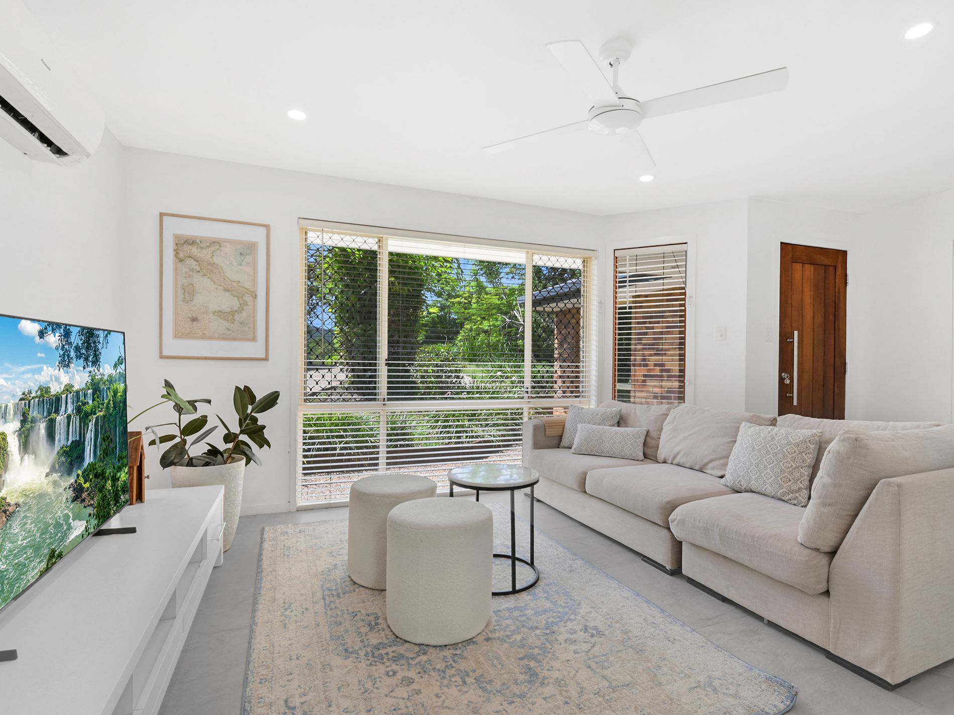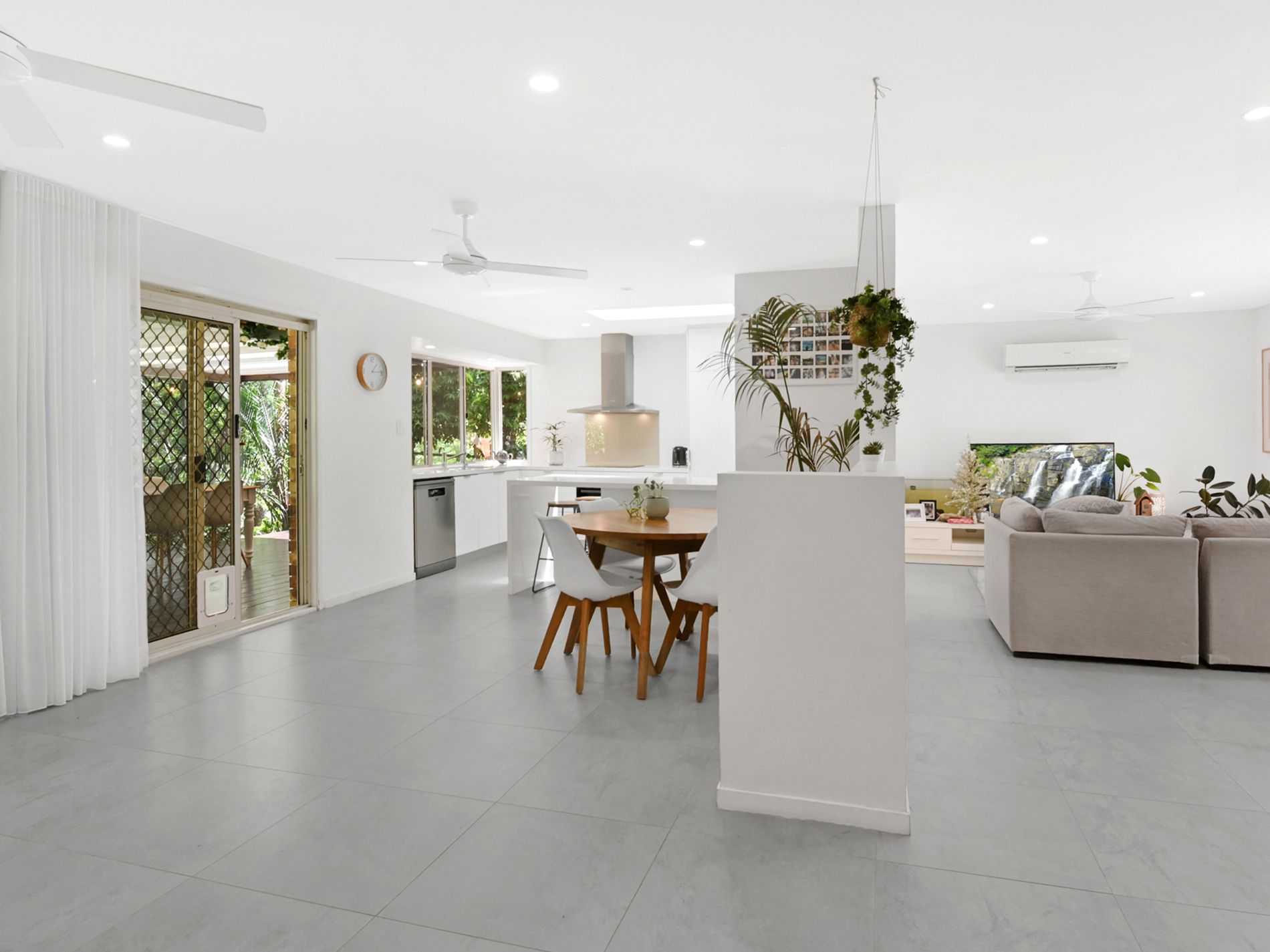 * Tiled open-plan living and dining with air conditioning and ceiling fans