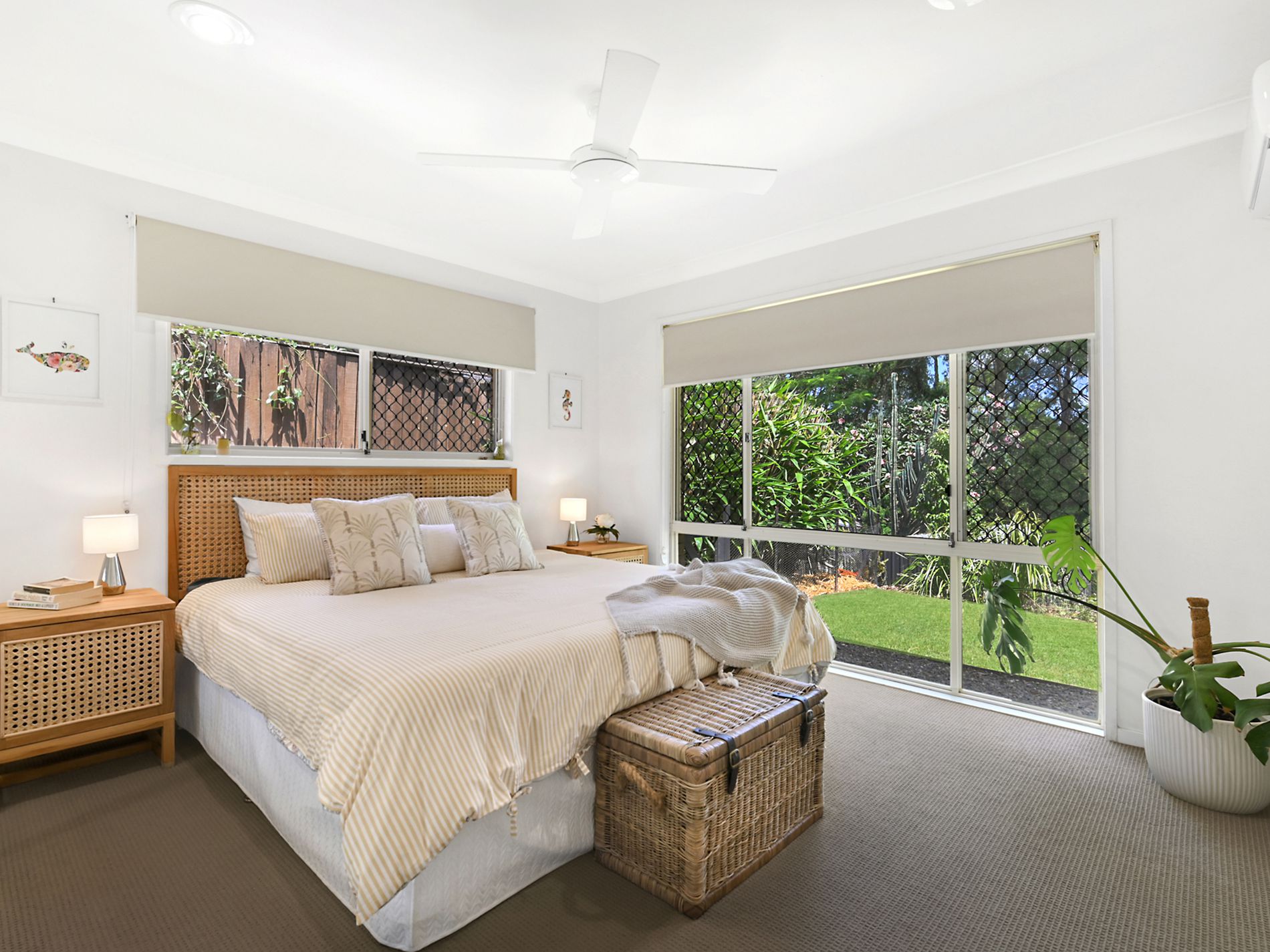 * Three additional bedrooms, all with ceiling fans and built-in robes (one with air conditioning)